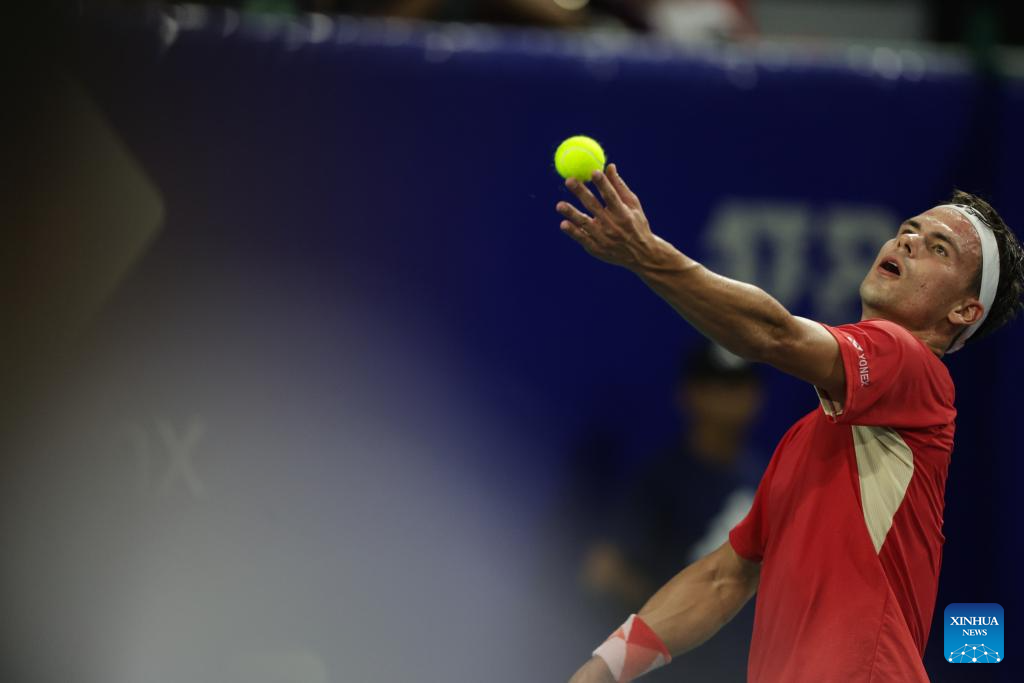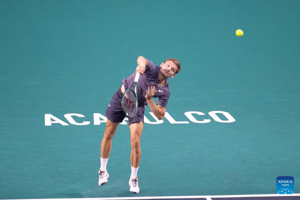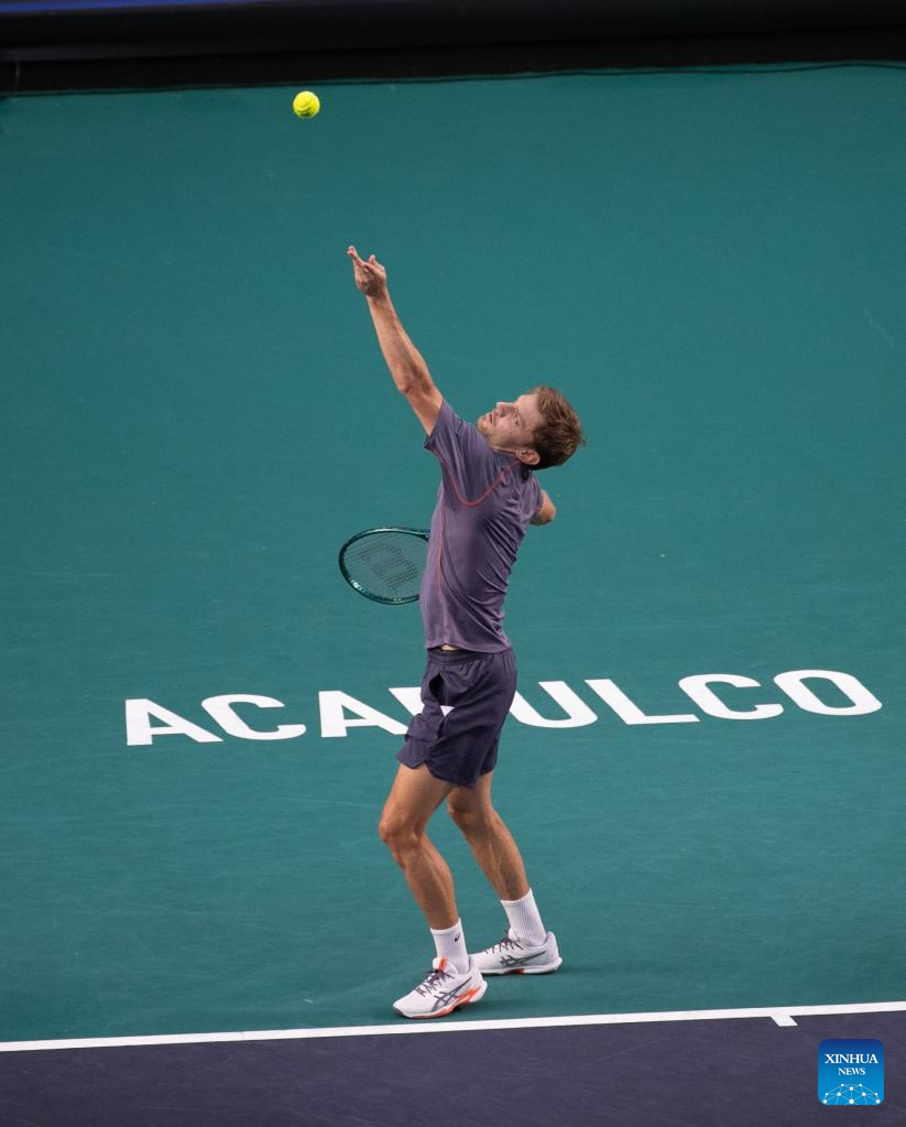 David Goffin of Belgium serves during the men's singles round of 16 match against Ben Shelton of the United States at the 2025 ATP Mexican Open tennis tournament in Acapulco, Mexico, Feb. 26, 2025. (Xinhua/Li Mengxin)