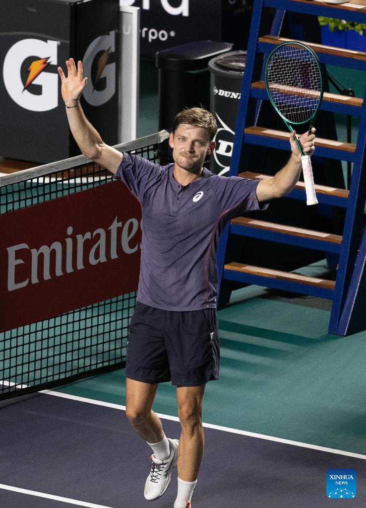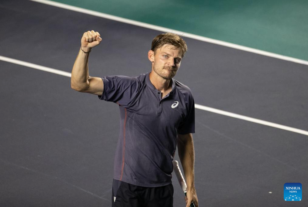 David Goffin of Belgium celebrates after winning the men's singles round of 16 match against Ben Shelton of the United States at the 2025 ATP Mexican Open tennis tournament in Acapulco, Mexico, Feb. 26, 2025. (Xinhua/Li Mengxin)