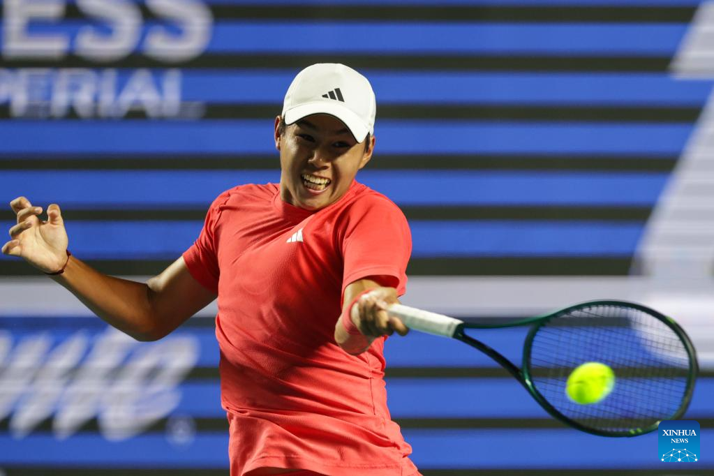 Learner Tien of the United States hits a return during the men's singles round of 16 match against Alexander Zverev of Germany at the 2025 ATP Mexican Open tennis tournament in Acapulco, Mexico, Feb. 26, 2025. (Photo by Francisco Canedo/Xinhua)