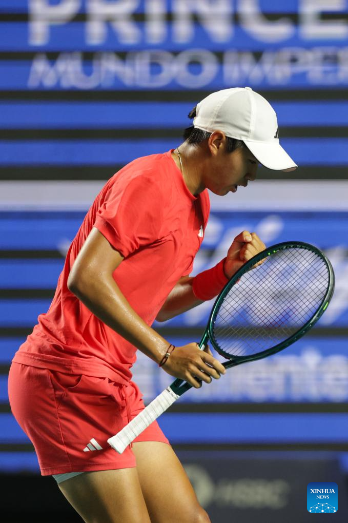Learner Tien of the United States celebrates during the men's singles round of 16 match against Alexander Zverev of Germany at the 2025 ATP Mexican Open tennis tournament in Acapulco, Mexico, Feb. 26, 2025. (Photo by Francisco Canedo/Xinhua)
