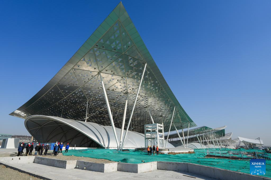 This photo taken on Feb. 26, 2025 shows the construction site of the Beijing sub-center comprehensive transportation hub in Tongzhou District, sub-center of Beijing, capital of China. The construction of the Beijing sub-center comprehensive transportation hub, Asia's largest underground transportation complex, is proceeding smoothly. The hub will link cross-regional and intercity railways, and several metro lines when completed as scheduled by the end of 2025. (Xinhua/Ju Huanzong)