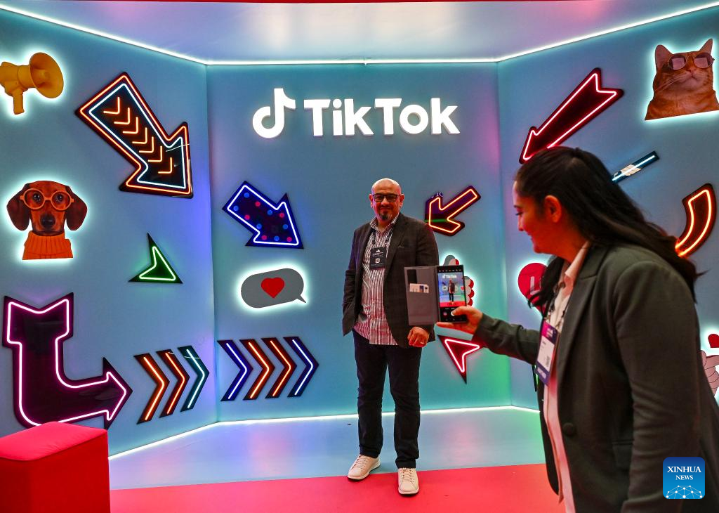 A visitor poses for photos during the Web Summit Qatar in Doha, Qatar, Feb. 25, 2025. The Web Summit Qatar, held at the Doha Exhibition and Convention Center from Feb. 23-26, saw a record 25,747 attendees from 124 countries and regions, including 1,520 startups and 723 investors. (Photo by Nikku/Xinhua)