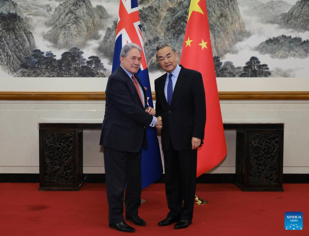 Chinese Foreign Minister Wang Yi, also a member of the Political Bureau of the Communist Party of China Central Committee, holds talks with Deputy Prime Minister and Foreign Minister of New Zealand Winston Peters in Beijing, capital of China, Feb. 26, 2025. (Xinhua/Ding Lin)