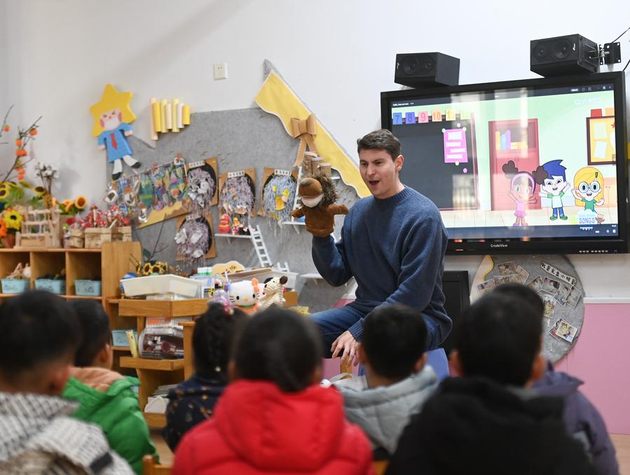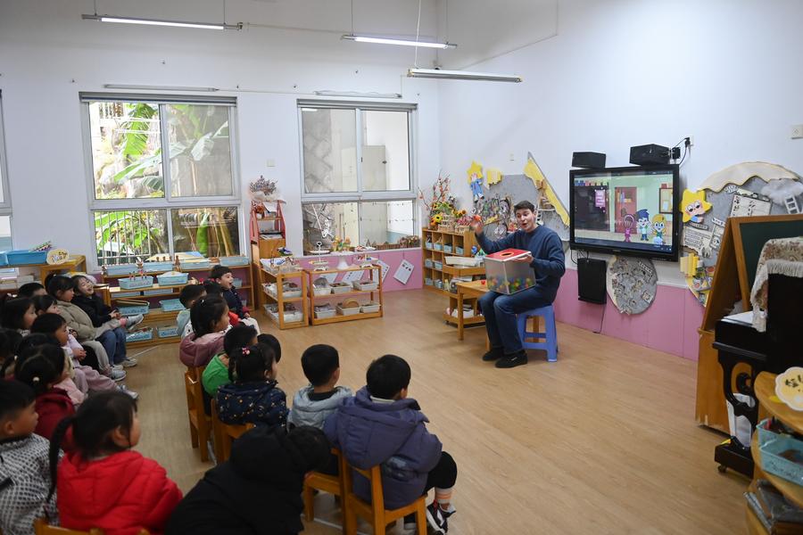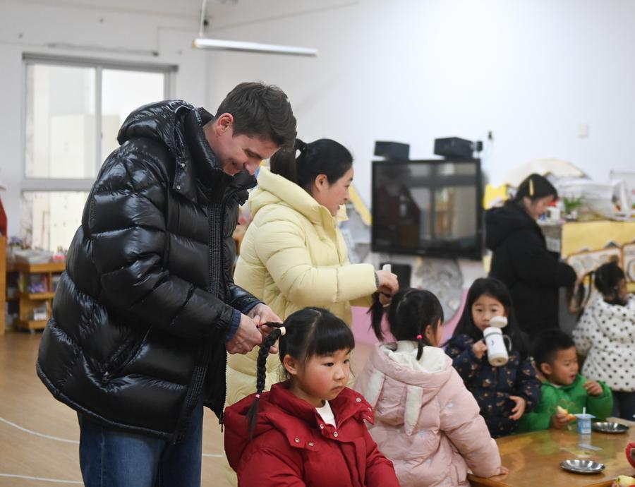 Iaroslav Lysenko (R) gives an English lesson to children at a kindergarten in Jiangshan, east China's Zhejiang Province, Feb. 18, 2025. (Xinhua/Huang Zongzhi)Iaroslav Lysenko gives an English lesson to children at a kindergarten in Jiangshan, east China's Zhejiang Province, Feb. 18, 2025. (Xinhua/Huang Zongzhi)Iaroslav Lysenko (R) and his wife Fan Huiqi (L) play with their son Caleb in Jiangshan, east China's Zhejiang Province, Feb. 18, 2025. (Xinhua/Huang Zongzhi)Iaroslav Lysenko (L) and his wife Fan Huiqi (R) play with their son Caleb at a shopping mall in Jiangshan, east China's Zhejiang Province, Feb. 18, 2025. (Xinhua/Huang Zongzhi)Iaroslav Lysenko sends his son to attend an extracurricular class in Jiangshan, east China's Zhejiang Province, Feb. 18, 2025. (Xinhua/Huang Zongzhi)Iaroslav Lysenko (L) braids hair for a girl at a kindergarten in Jiangshan, east China's Zhejiang Province, Feb. 18, 2025. (Xinhua/Huang Zongzhi)Iaroslav Lysenko interacts with a child at a kindergarten in Jiangshan, east China's Zhejiang Province, Feb. 18, 2025. (Xinhua/Huang Zongzhi)Iaroslav Lysenko (R) poses for a photo with his wife Fan Huiqi and his son Caleb in Jiangshan, east China's Zhejiang Province, Feb. 18, 2025. (Xinhua/Huang Zongzhi)