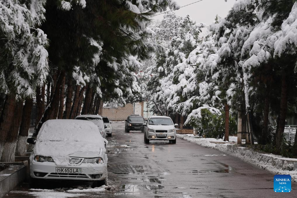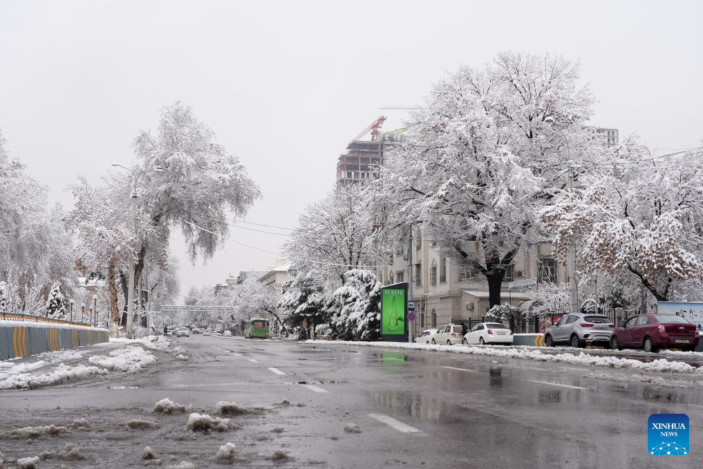 This photo taken on Feb. 26, 2025 shows the snow scenery in Tashkent, capital of Uzbekistan. (Photo by Zafar Khalilov/Xinhua)