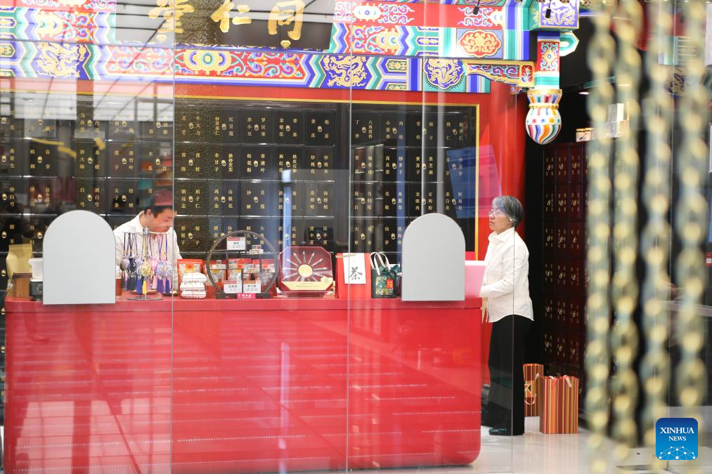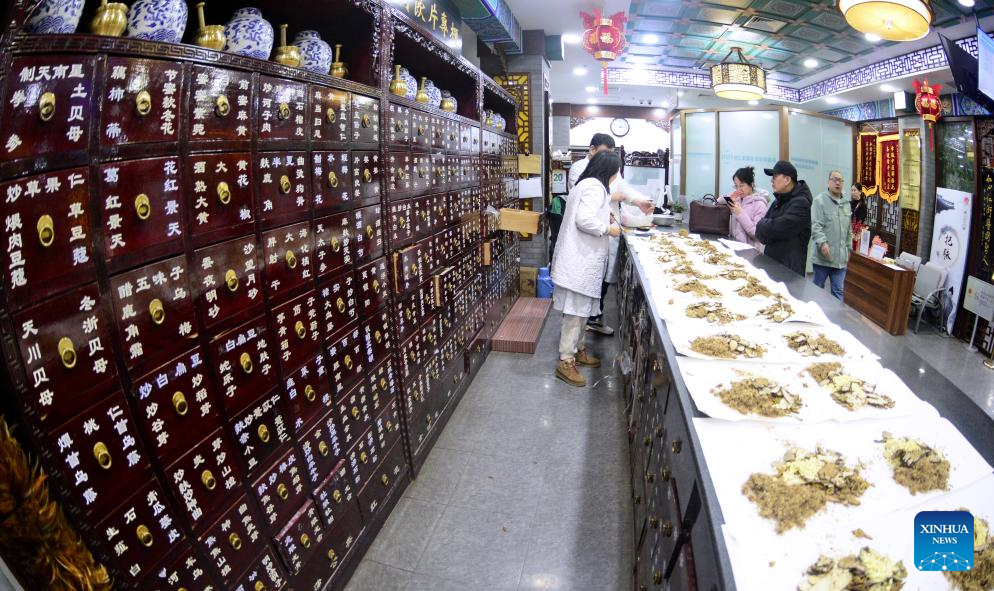 This photo taken on Feb. 25, 2025 shows the Chinese medicine pharmacy at the Zhengda branch of Zhima Health stores of Tong Ren Tang in Beijing, capital of China. (Xinhua/Zhu Weixi)
