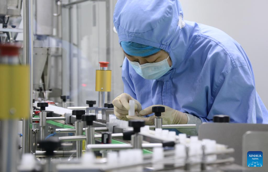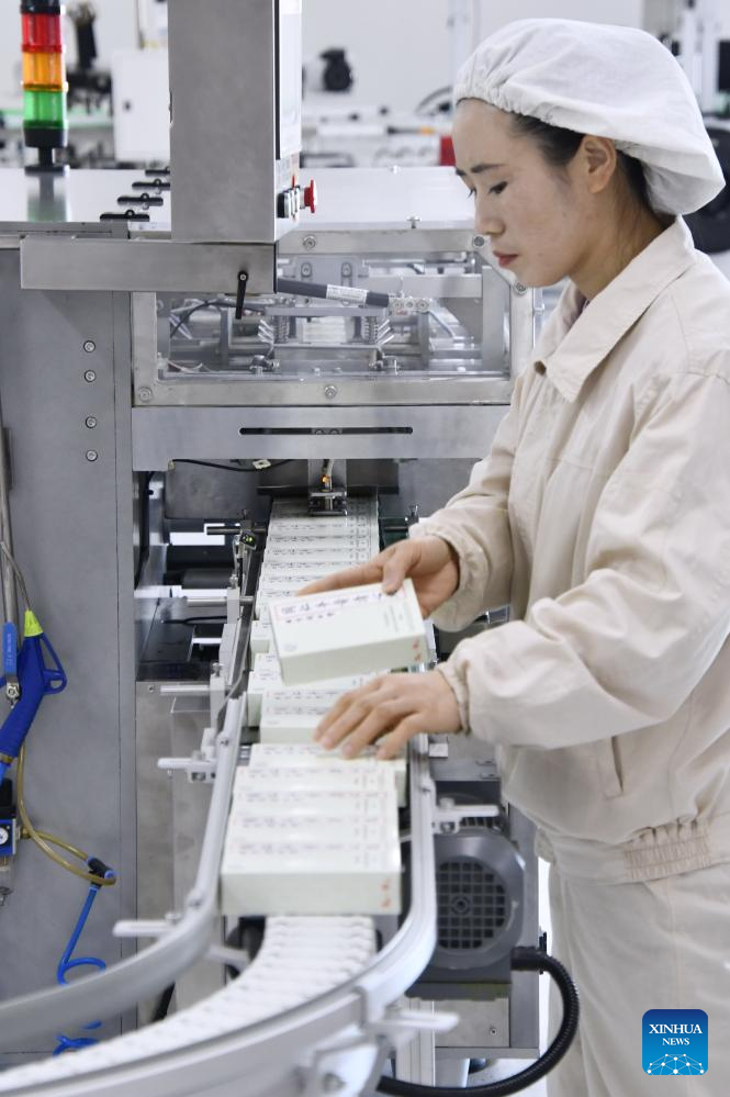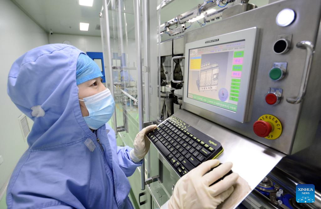 A pharmacist works at a factory of the Daxing Branch of Tong Ren Tang Technologies Co., Ltd. in Beijing, capital of China, Feb. 24, 2025. (Xinhua/Li Xin)
