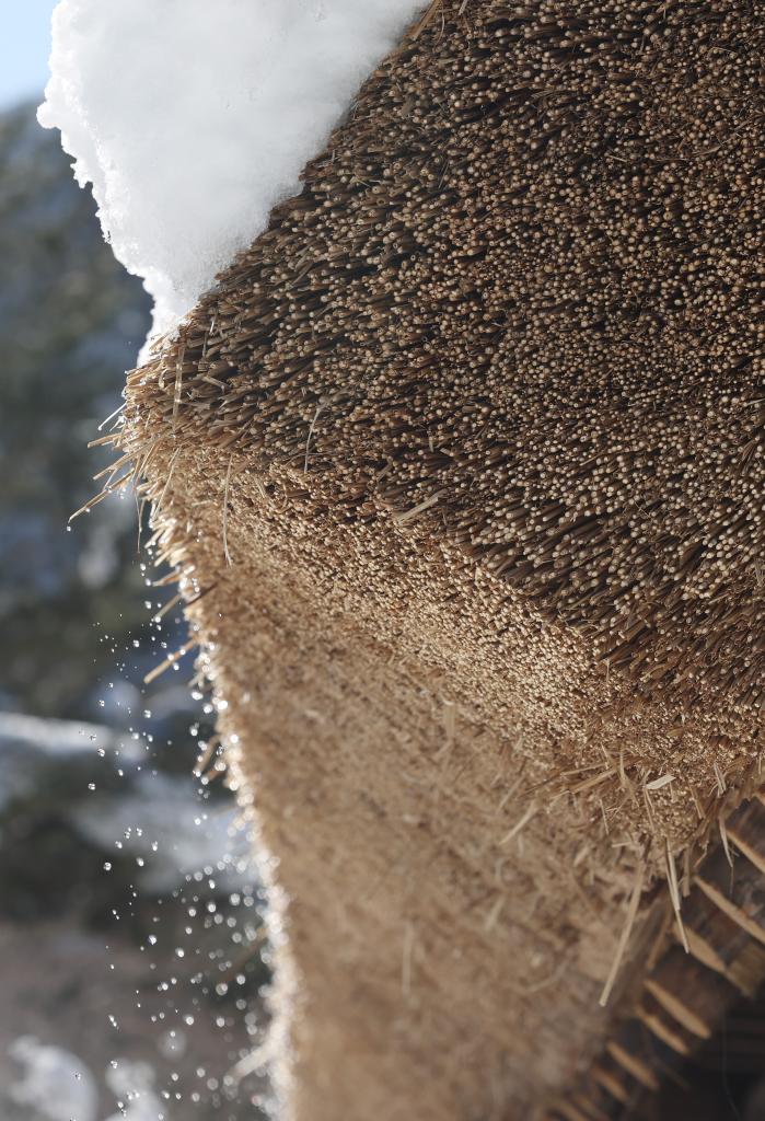These roofs, constructed entirely of wood and straw without the use of nails, are designed at a sharp 60-degree angle to facilitate the sliding off of snow. The beams of the houses are oriented east to west, ensuring ample sunlight and reducing wind resistance-ingenious adaptations born from villagers' long-standing experience of living in a cold, snowy environment.