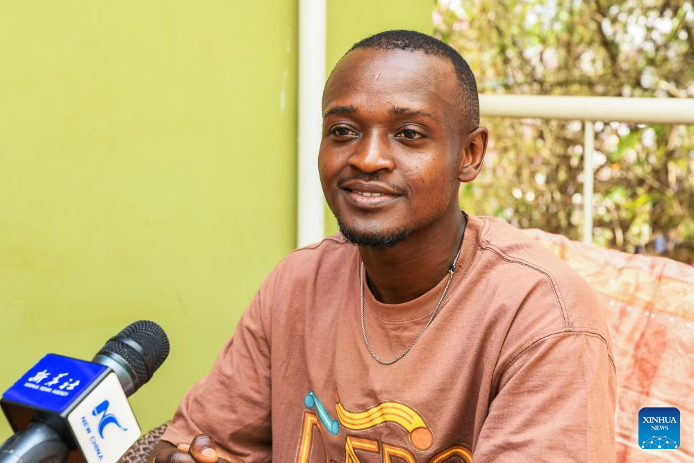 Cabrel Domche speaks during an interview with Xinhua, in Yaounde, capital of Cameroon, Feb. 13, 2025. (Xinhua/Kepseu)
