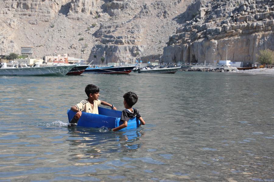 KHASAB, Oman, Feb. 28 (Xinhua) -- At the northernmost tip of Oman, the Musandam Peninsula juts into the Persian Gulf like a dagger, standing guard at the entrance to the Strait of Hormuz, with Iran visible across the water.
