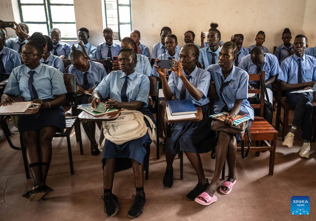 Students attend a class taught by the 12th batch of Chinese medical team to South Sudan at the Juba Health Sciences Institute in Juba, South Sudan, on Feb. 25, 2025. Members on the 12th batch of Chinese medical team to South Sudan have been performing medication and education duties at local institutions including the Juba Teaching Hospital, the Juba Health Sciences Institute and the University of Juba since they arrived on Sept. 4, 2024. They had treated 7,124 outpatients and performed 81 surgical operations by Feb. 24, 2025. (Xinhua/Wang Guansen)