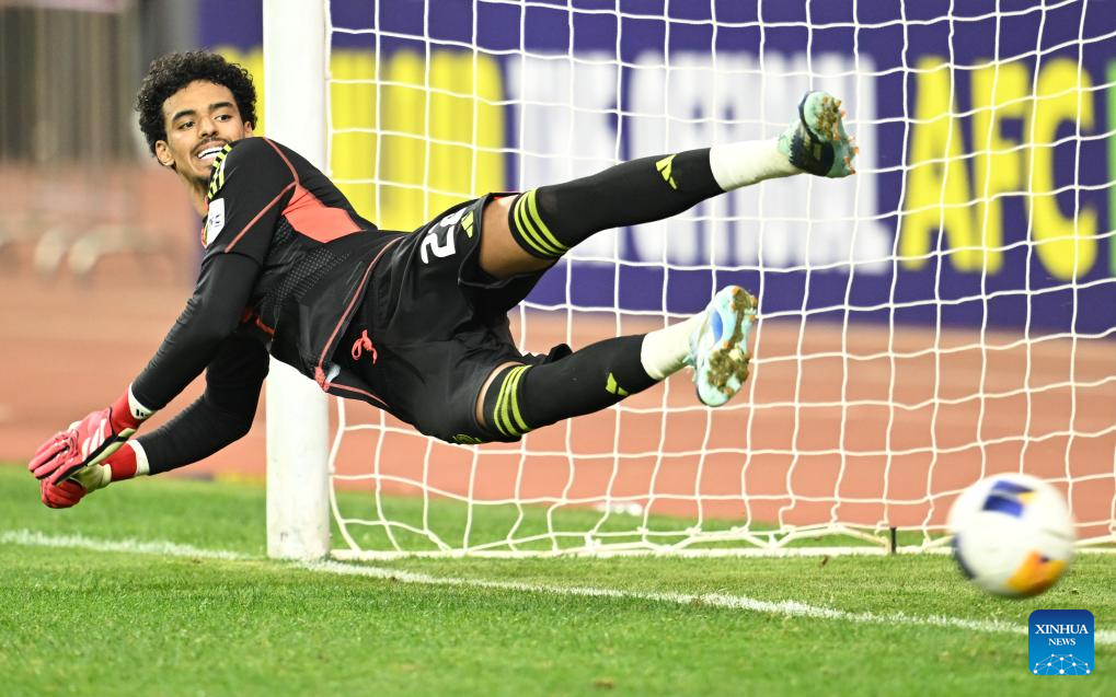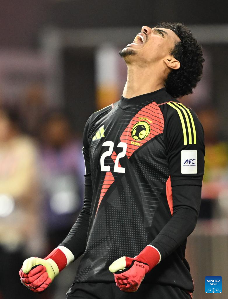 (250301) -- SHENZHEN, March 1, 2025 (Xinhua) -- Goalkeeper of Saudi Arabia Hamed Abdullah Yousef reacts during the penalty shoot out of the final between Australia and Saudi Arabia at AFC U20 Asian Cup football tournament in Shenzhen, south China's Guangdong Province, March 1, 2025. (Xinhua/Deng Hua)