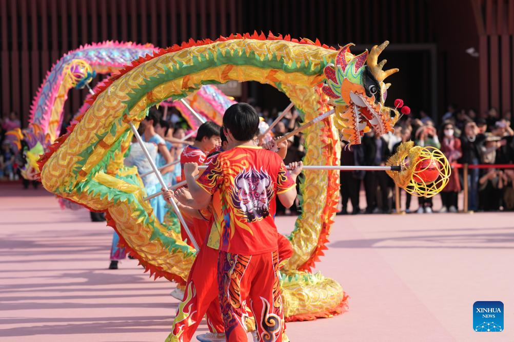 People perform the Fenghua Cloth Dragon Dance during a cultural event in Fenghua, east China's Zhejiang Province, March 1, 2025. The Fenghua Cloth Dragon Dance was listed as a national intangible cultural heritage of China in 2006. (Xinhua/Huang Zongzhi)
