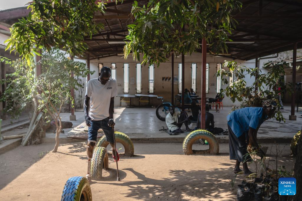 Disabled refugees take rehabilitation training at a physical rehabilitation center in Juba, the capital of South Sudan, on Feb. 28, 2025. The physical rehabilitation center currently accommodates over 30 individuals, aiming to assist refugees disabled by conflicts to regain their functions. (Xinhua/Wang Guansen)