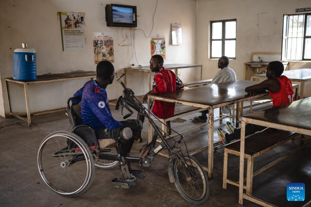 A disabled refugee relaxes at a physical rehabilitation center in Juba, the capital of South Sudan, on Feb. 28, 2025. The physical rehabilitation center currently accommodates over 30 individuals, aiming to assist refugees disabled by conflicts to regain their functions. (Xinhua/Wang Guansen)
