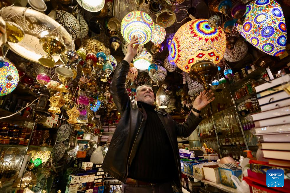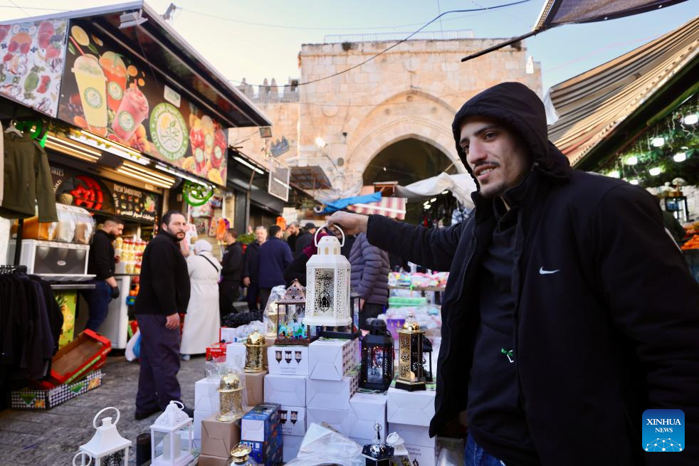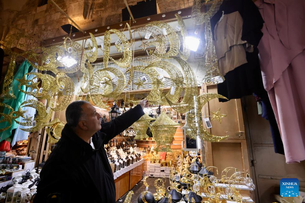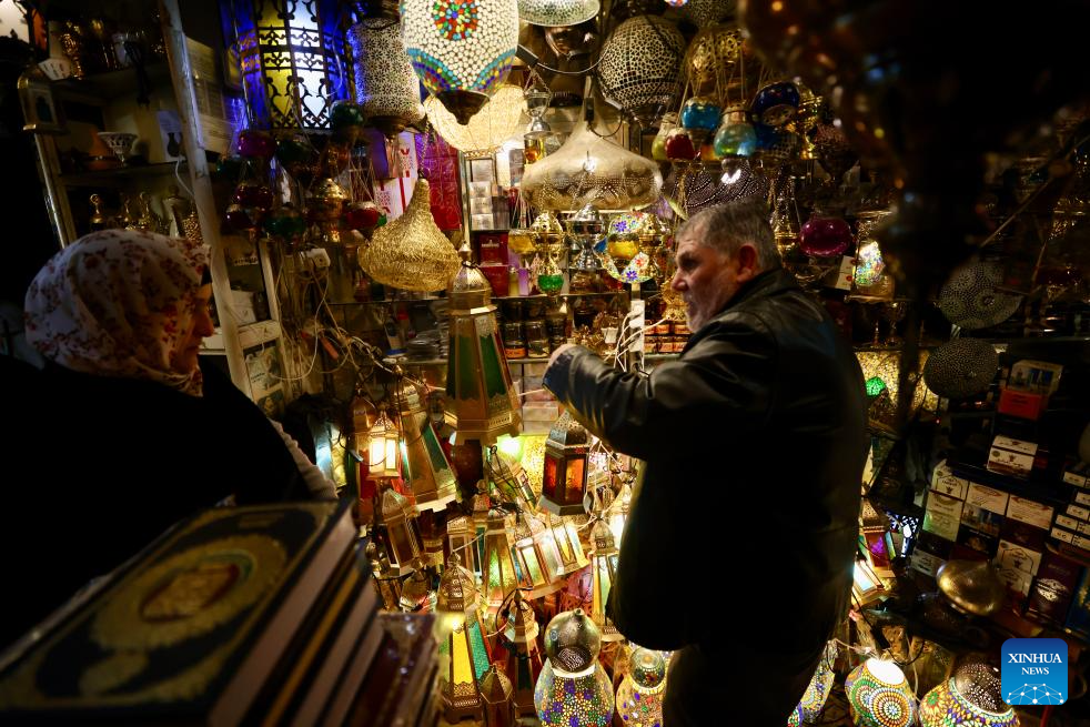 A man sells decorative lanterns ahead of Ramadan in Jerusalem's Old City, on Feb. 28, 2025. (Photo by Jamal Awad/Xinhua)