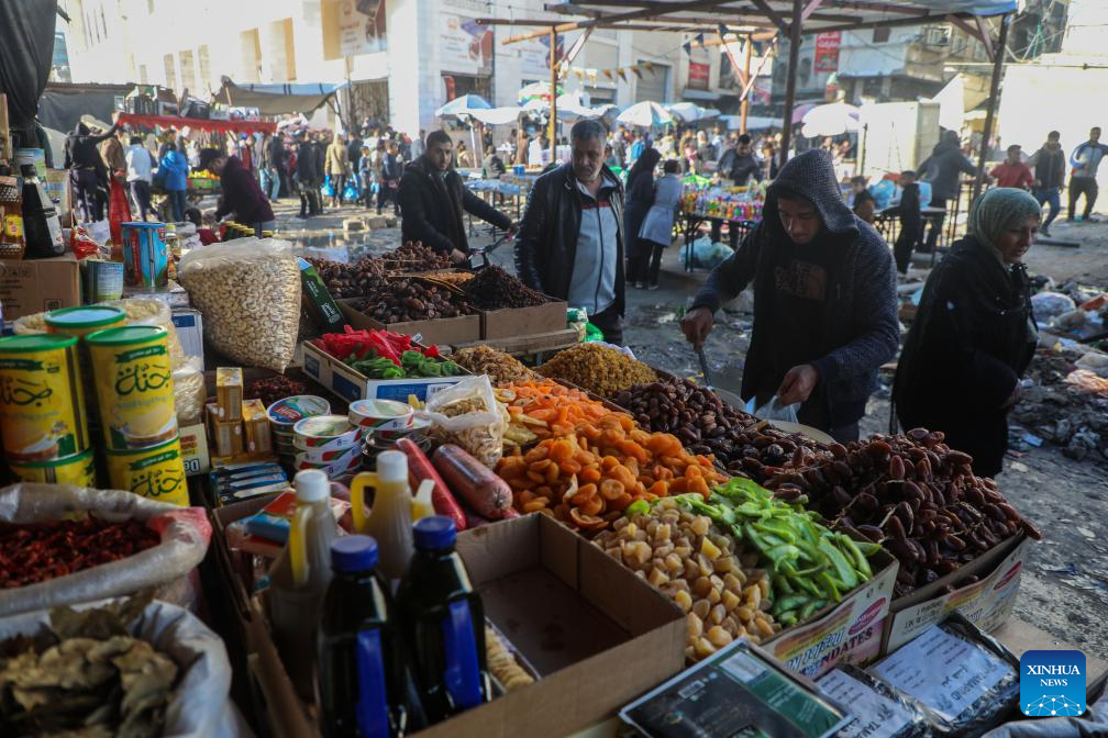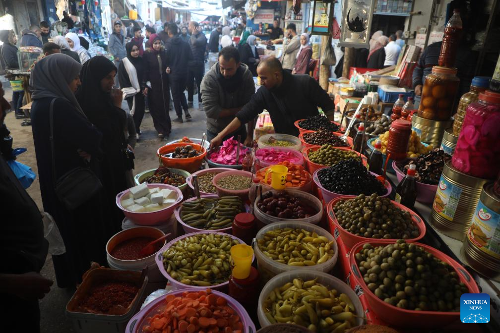 People shop at a market ahead of Ramadan in Gaza City, on Feb. 28, 2025. (Photo by Rizek Abdeljawad/Xinhua)