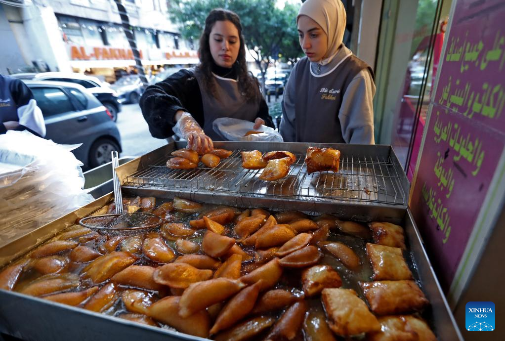 This photo taken on March 1, 2025 shows desserts on the first day of Ramadan in Beirut, Lebanon. (Xinhua/Bilal Jawich)