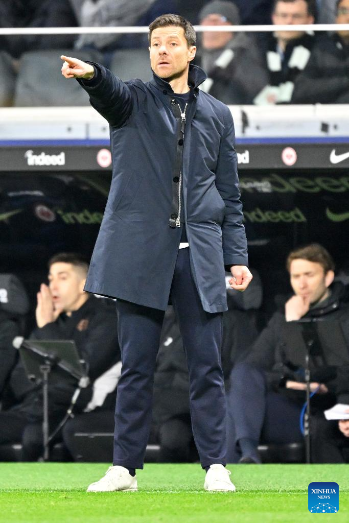 Xabi Alonso, head coach of Bayer 04 Leverkusen, instructs during the German first division of Bundesliga football match between Eintracht Frankfurt and Bayer 04 Leverkusen in Frankfurt, Germany, March 1, 2025. (Photo by Ulrich Hufnagel/Xinhua)