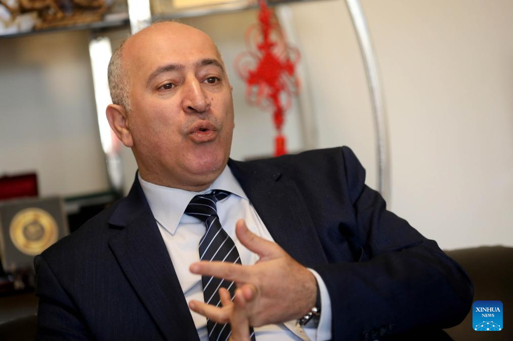 Waref Kumayha, president of the Silk Road Institute for Studies and Research in Lebanon, speaks during an interview with Xinhua in Beirut, Lebanon, on Feb. 18, 2025. (Xinhua/Bilal Jawich)
