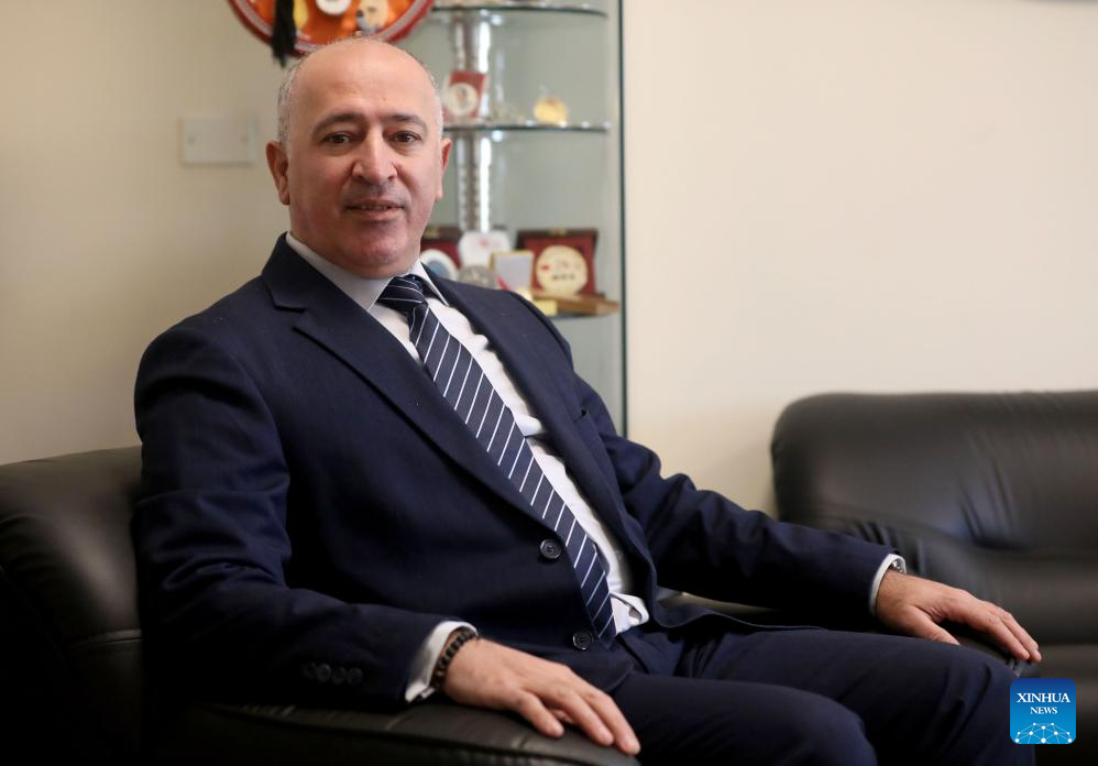 Waref Kumayha, president of the Silk Road Institute for Studies and Research in Lebanon, poses for a photo during an interview with Xinhua in Beirut, Lebanon, on Feb. 18, 2025. (Xinhua/Bilal Jawich)