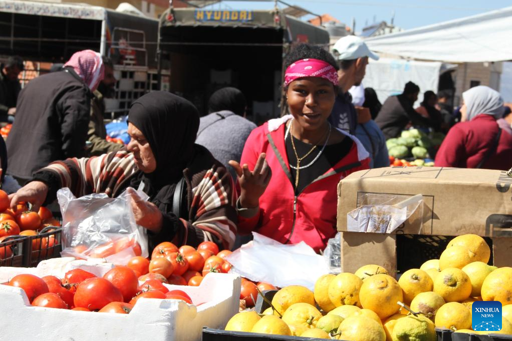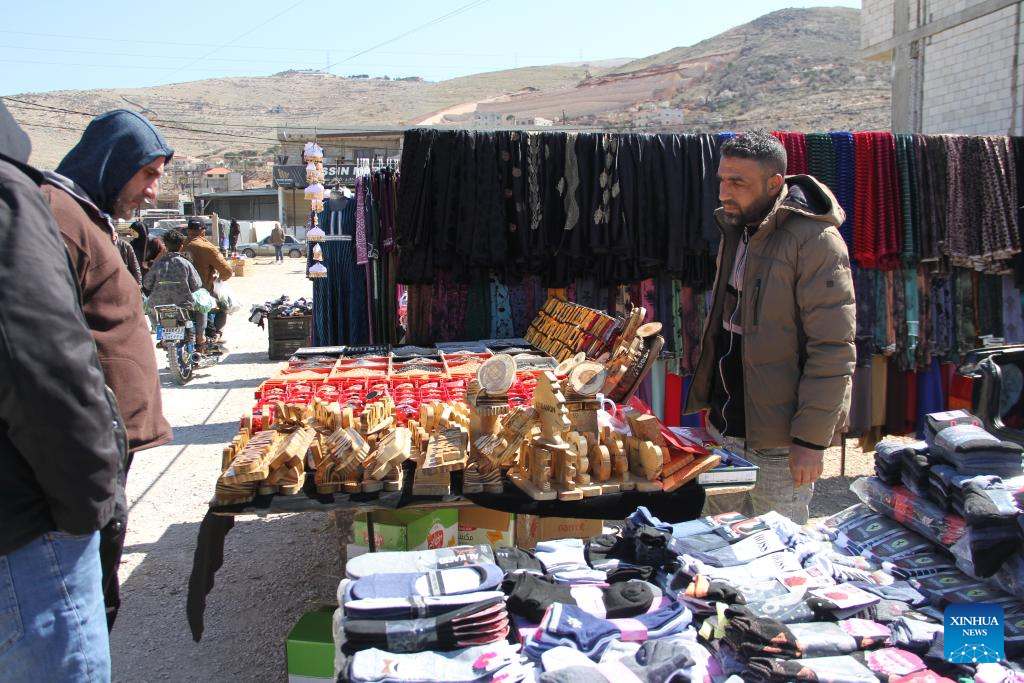 People shop for the Muslim holy month of Ramadan at a market in Masnaa, Lebanon, on March 2, 2025. (Photo by Taher Abu Hamdan/Xinhua)