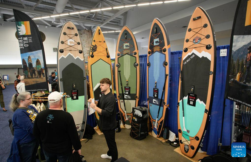 Over 250 exhibitors showcase their latest camping gear, paddle equipment, outdoor clothing, scuba diving gear and ultimate adventure travel products and services at the event. (Photo by Liang Sen/Xinhua)