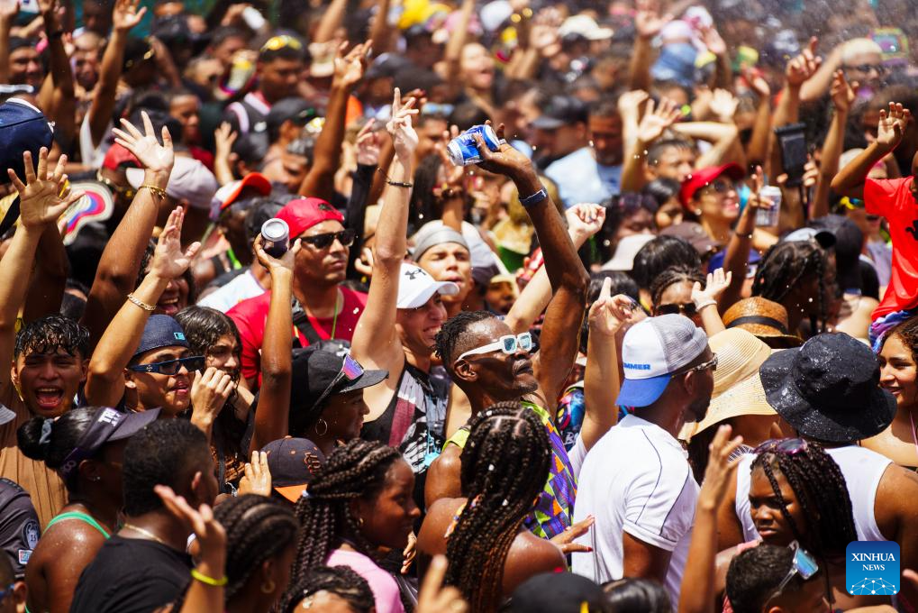 Visitors enjoy themselves at the 2025 Carnival Festival in Panama City, Panama, March 2, 2025. The festival is held here from Feb. 28 to March 4. (Xinhua/Xu Yongzheng)