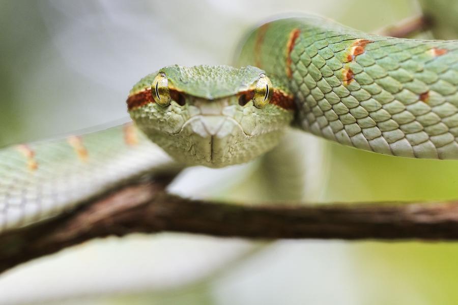 A Wagler's pit viper rests on a tree branch in Singapore's Central Catchment Nature Reserve on Jan. 14, 2025. (Then Chih Wey/Xinhua)