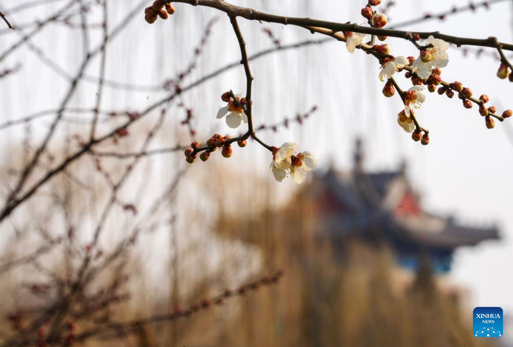 A cluster of blooming plum flowers is pictured near a turret of Zuo'anmen Gate in Beijing, capital of China, March 5, 2025. Wednesday marks the day of "Jingzhe" or "Awakening of Insects," the third of 24 solar terms on China's Lunar Calendar. It is believed to be the time for spring farming. (Xinhua/Fei Maohua)