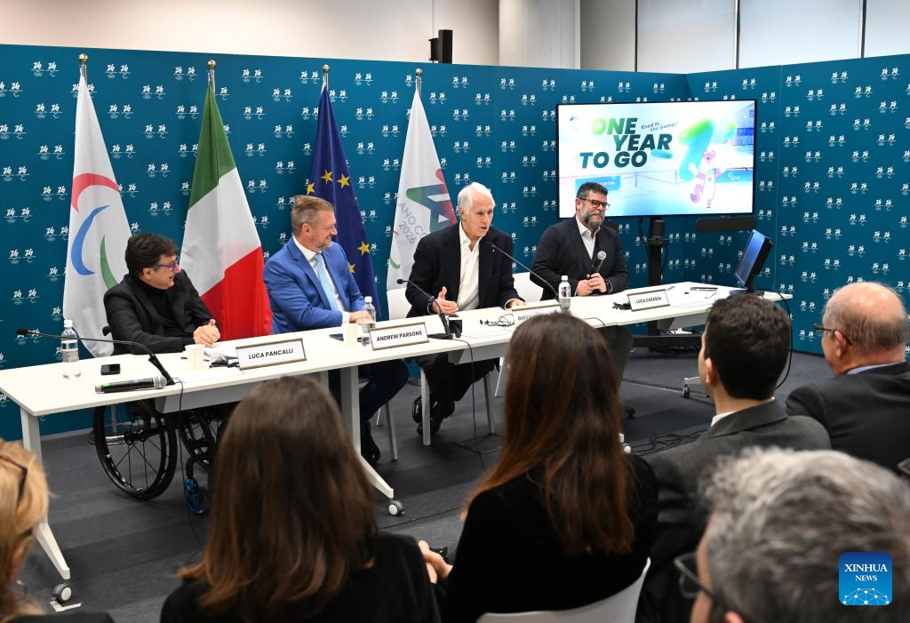 This photo taken on March 5, 2025 shows the One Year To Go ceremony for the Milano Cortina 2026 Paralympic Winter Games in Milan, Italy. (Xinhua)
