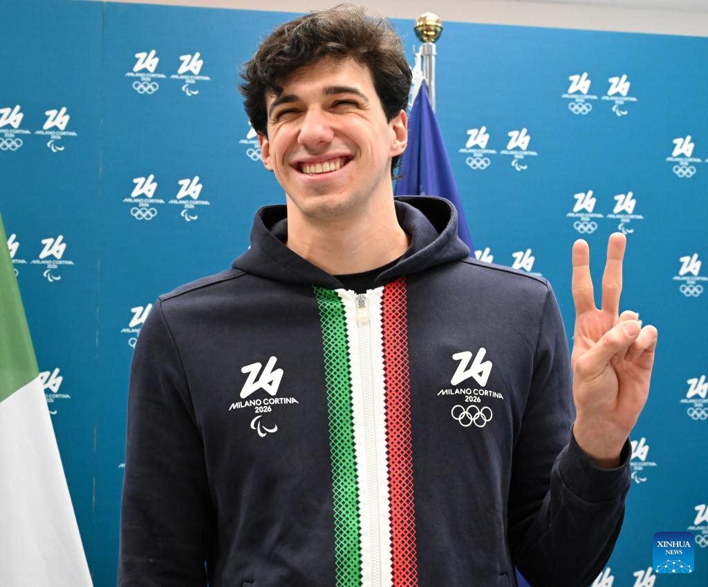 Paralympic swimming champion Simone Barlaam of Italy poses during the One Year To Go ceremony for the Milano Cortina 2026 Paralympic Winter Games in Milan, Italy, March 5, 2025. (Xinhua)