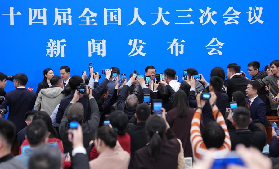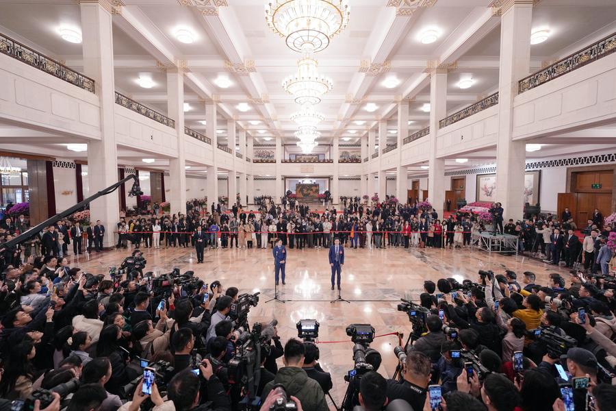 The opening meeting of the third session of the 14th National Committee of the Chinese People's Political Consultative Conference (CPPCC) is held at the Great Hall of the People in Beijing, capital of China, March 4, 2025. (Xinhua/Zhai Jianlan)Lou Qinjian, spokesperson for the third session of the 14th National People's Congress (NPC), talks with journalists after a press conference at the Great Hall of the People in Beijing, capital of China, March 4, 2025. The NPC, China's national legislature, held a press conference on Tuesday, one day ahead of the opening of its annual session. (Xinhua/Zheng Huansong)Deputies to the 14th National People's Congress (NPC) attend a group interview ahead of the opening meeting of the third session of the 14th NPC at the Great Hall of the People in Beijing, capital of China, March 5, 2025. (Xinhua/Zheng Huansong)An aerial drone photo taken on Feb. 28, 2025 shows a semi-submersible vessel loaded with 13 commodity ships waiting to set sail at Sanduao sea area, Ningde City, southeast China's Fujian Province. The vessel is the third largest one of its kind in the world. (Xinhua/Lin Shanchuan)Chinese quantum physicist Zhu Xiaobo (1st L) has a discussion with his students at a laboratory in Hefei, east China's Anhui Province, on March 3, 2025. Chinese scientists unveiled a superconducting quantum computer prototype named "Zuchongzhi 3.0" with 105 qubits on Monday (Beijing Time), marking a breakthrough in China's quantum computing advancements. The achievement also sets a new record in quantum computational advantage within superconducting systems. (Photo by Dai Rui/Xinhua)Workers are seen busy at the construction site of a tunnel crossing the Yellow River in Jinan, east China's Shandong Province, March 4, 2025. Construction work of the tunnel section beneath the riverbed of the Yellow River kicked off on Tuesday. About 3,290 meters of this 5,755-meter tunnel are being drilled with a shield-tunneling machine at a diameter of 17.5 meters. (Xinhua/Zhu Zheng)Suolangquzhen (1st R) of China competes during the ski mountaineering mixed relay race at the 2025 ISMF World Championships in Morgins, Switzerland, on March 3, 2025. Chinese pair Zhang Chenghao/Suolangquzhen finished 13th to extend China's lead on the Asian standings. (Xinhua/Lian Yi)People watch the demonstration of a humanoid robot and a robotic dog at the booth of Honor at the 2025 Mobile World Congress in Barcelona, Spain, March 3, 2025. The 2025 Mobile World Congress (MWC) opened here on Monday, bringing together industry leaders, policymakers, and technology innovators to explore advancements in 5G, artificial intelligence (AI), and advanced connectivity. More than 300 Chinese firms, including China Mobile, China Unicom, China Telecom, Huawei, ZTE, Lenovo, and Xiaomi, are showcasing their latest innovations. (Xinhua/Zhao Dingzhe)Revelers pose for photos on the closing day of the Venice Carnival in Venice, Italy, March 4, 2025. (Photo by Alberto Lingria/Xinhua)■
