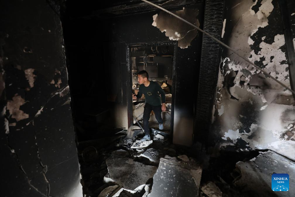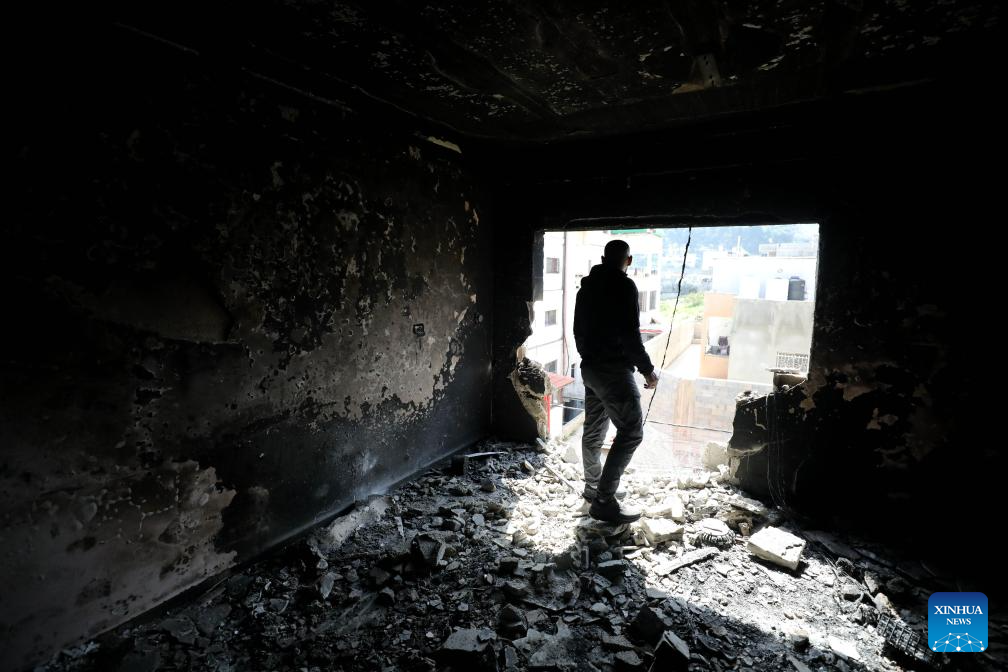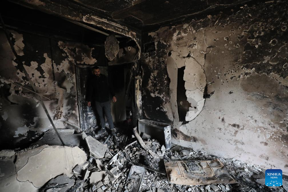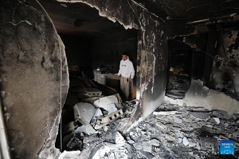 A man is seen inside a house blown up in an Israeli military operation in the West Bank city of Jenin, on March 4, 2025. The Israeli army on Tuesday killed a senior Qassam Brigades commander and another Palestinian during a large-scale military operation in the eastern neighborhood of the northern West Bank city of Jenin. (Photo by Nidal Eshtayeh/Xinhua)