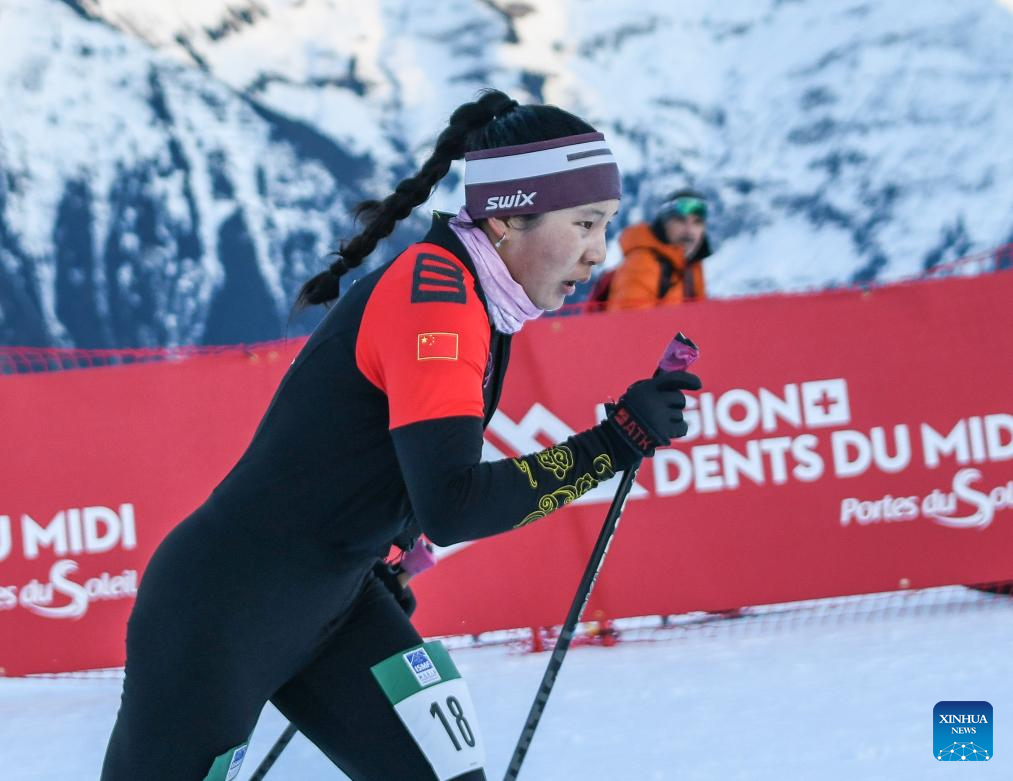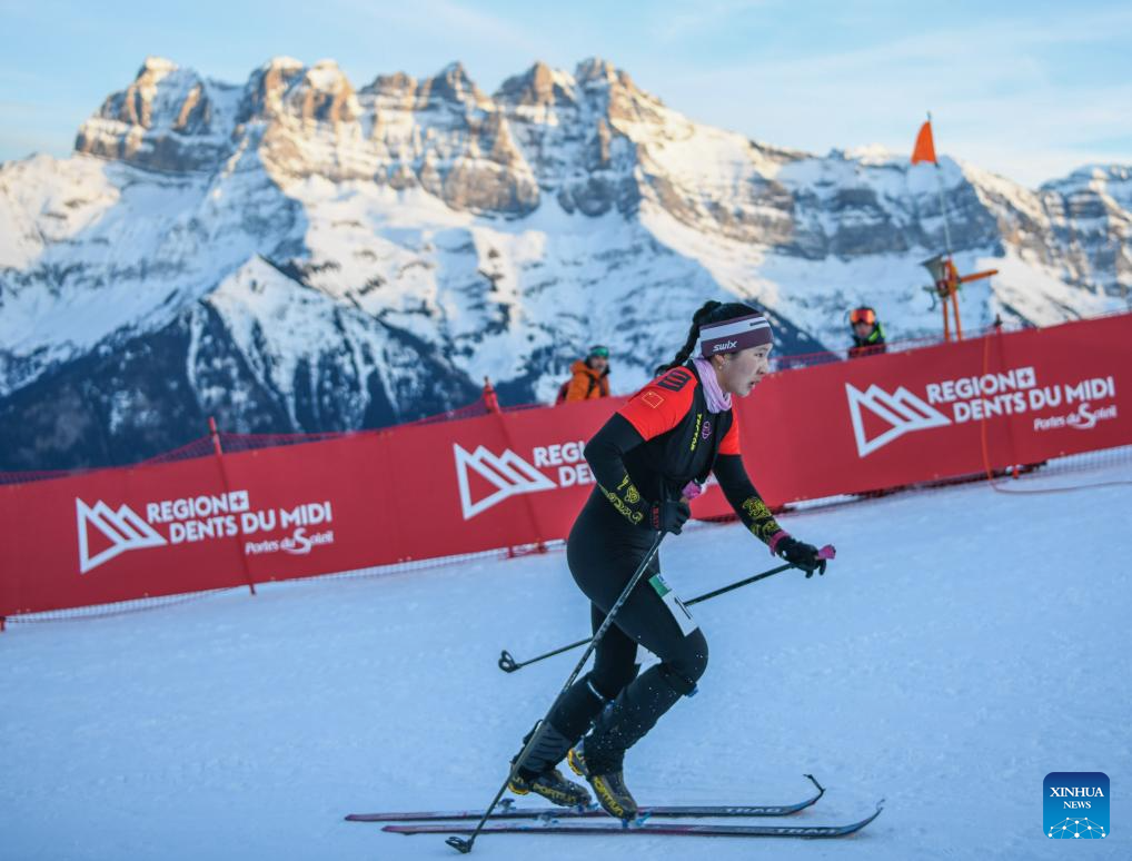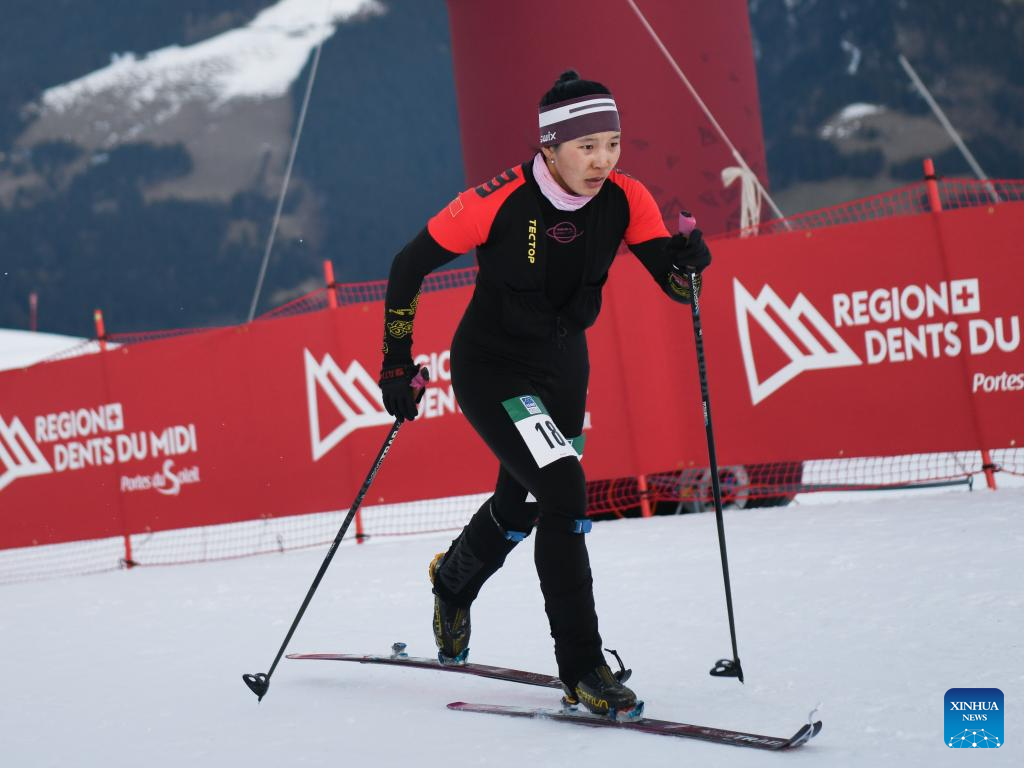 Yuzhen Lamu of China competes during the ski mountaineering women's vertical race final at the 2025 ISMF World Championships in Morgins, Switzerland, on March 4, 2025. (Xinhua/Lian Yi)