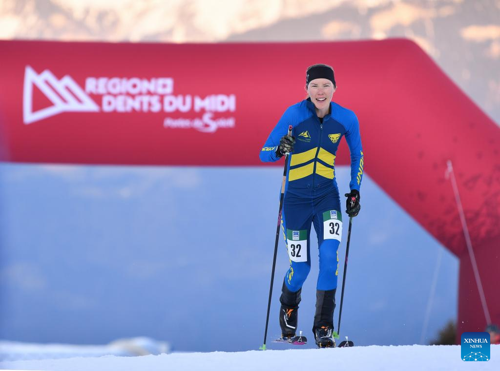 Tove Alexandersson of Sweden competes during the ski mountaineering women's vertical race final at the 2025 ISMF World Championships in Morgins, Switzerland, on March 4, 2025. (Xinhua/Lian Yi)