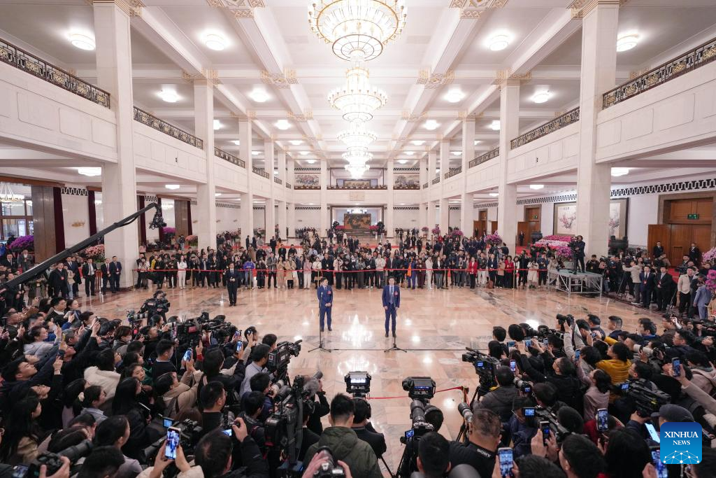 Deputies to the 14th National People's Congress (NPC) attend a group interview ahead of the opening meeting of the third session of the 14th NPC at the Great Hall of the People in Beijing, capital of China, March 5, 2025. (Xinhua/Zheng Huansong)