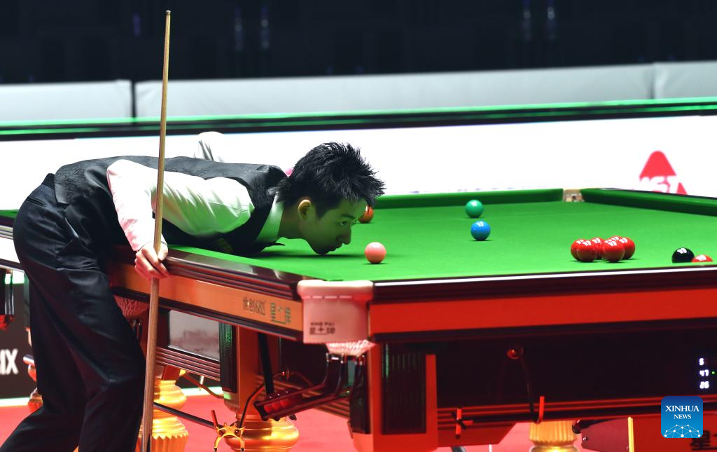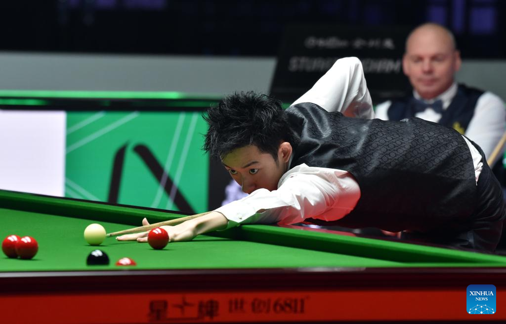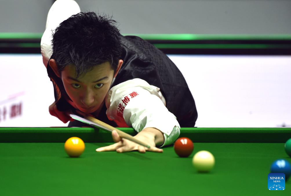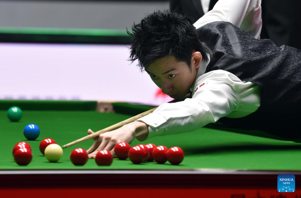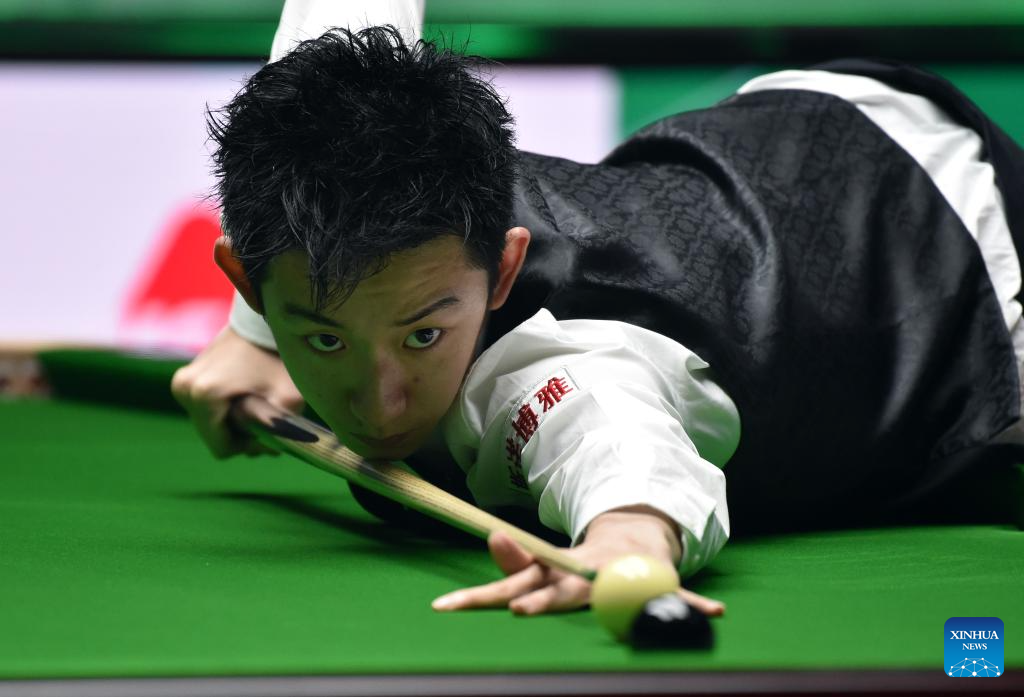 Wu Yize competes during the round of 16 match between Stuart Bingham of England and Wu Yize of China at the Snooker World Grand Prix 2025 in Hong Kong, south China, on March 6, 2025. (Photo by Lo Ping Fai/Xinhua)