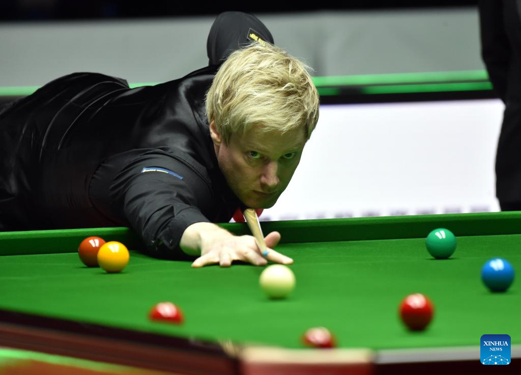 Neil Robertson of Australia plays a shot during the second round match against David Gilbert of England at the Snooker World Grand Prix 2025 in Hong Kong, south China, March 6, 2025. (Xinhua/Lo Ping Fai)