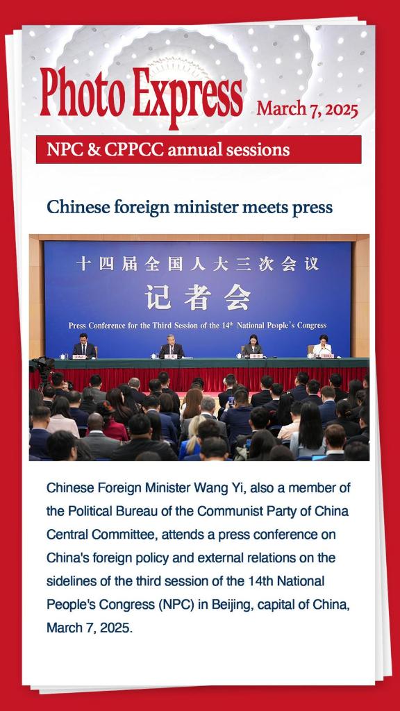 BEIJING, March 7 (Xinhua) -- Chinese Foreign Minister Wang Yi met the press Friday morning on the sidelines of the third session of the 14th National People's Congress.