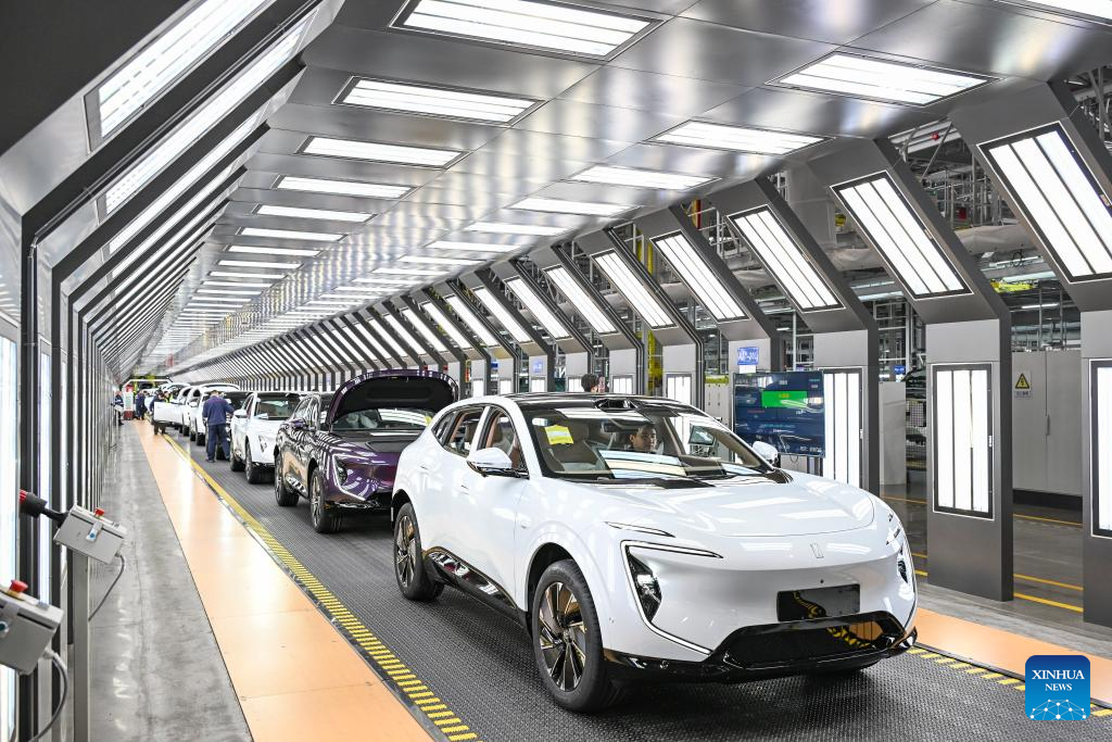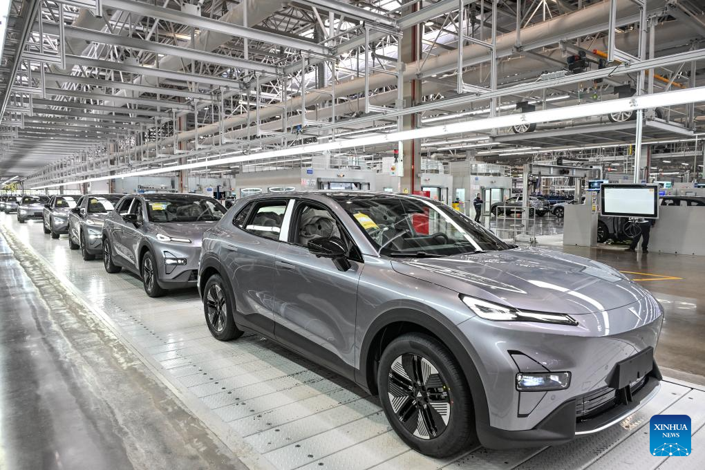 New energy vehicles come off the assembly line at the final assembly workshop of Chang'an Auto Digital Intelligence Factory, in Yubei District of southwest China's Chongqing, March 6, 2025. (Xinhua/Wang Quanchao)