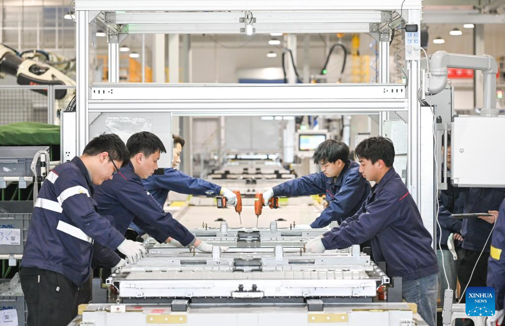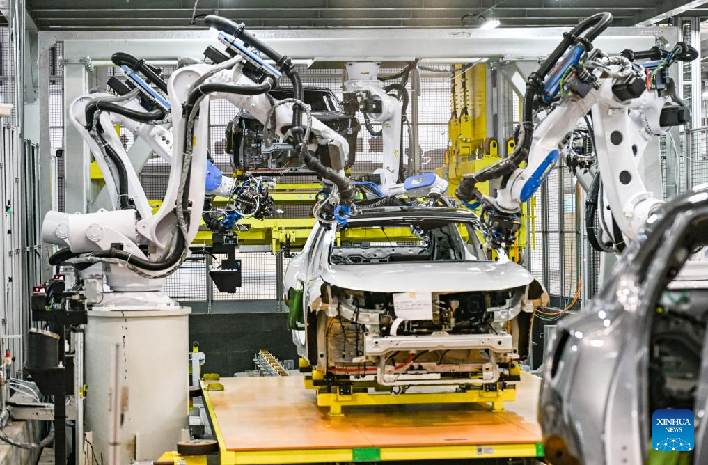 With the goal of digitalizing the whole manufacturing process, Chang'an Auto Digital Intelligence Factory has applied more than 40 advanced technologies such as 5G, artificial intelligence, and digital twins. The factory has gained the production capacity of quickly switching different vehicle models and realized collinear production of multi-brands and multi-power types of vehicles, which not only improves its production efficiency, but also enhances its ability to respond to changes in market demand. (Xinhua/Wang Quanchao)