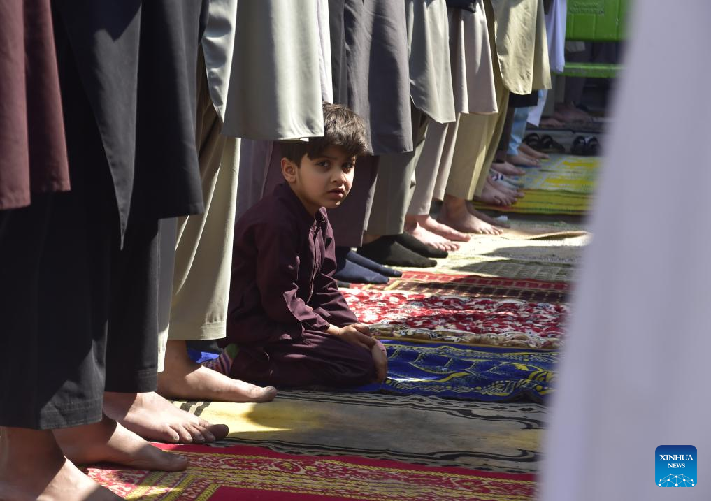 A boy is pictured as people attend the first Friday prayer during the holy month of Ramadan in Peshawar, Pakistan, on March 7, 2025. (Photo by Saeed Ahmad/Xinhua)