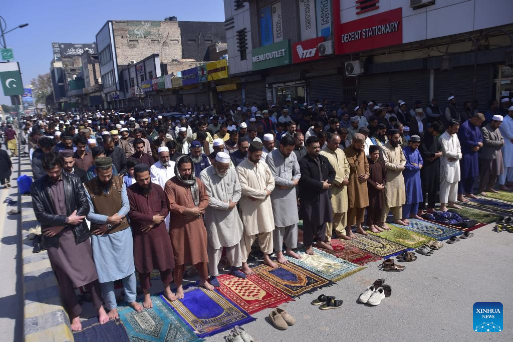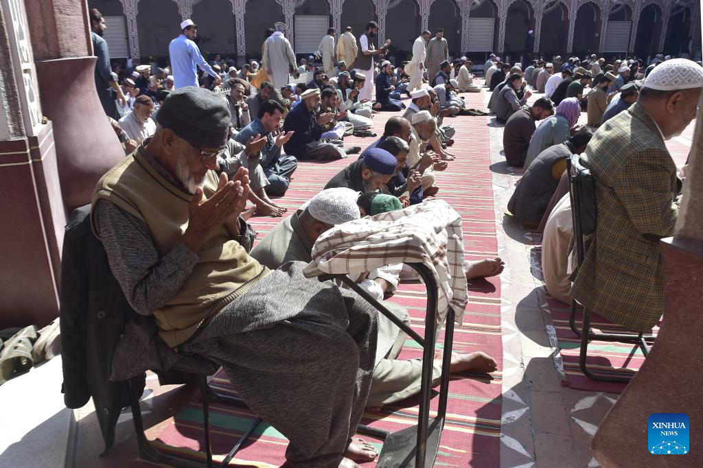 People attend the first Friday prayer during the holy month of Ramadan in Peshawar, Pakistan, on March 7, 2025. (Photo by Saeed Ahmad/Xinhua)