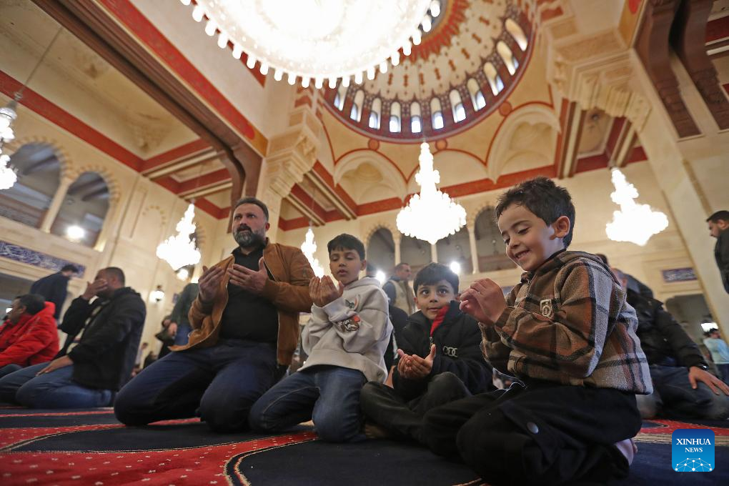 People attend the first Friday prayer during the holy month of Ramadan in Beirut, Lebanon, March 7, 2025. (Xinhua/Bilal Jawich)