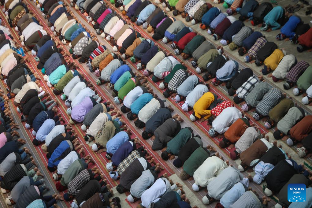 People attend the first Friday prayer during the holy month of Ramadan in Kathmandu, Nepal, March 7, 2025. (Photo by Sulav Shrestha/Xinhua)