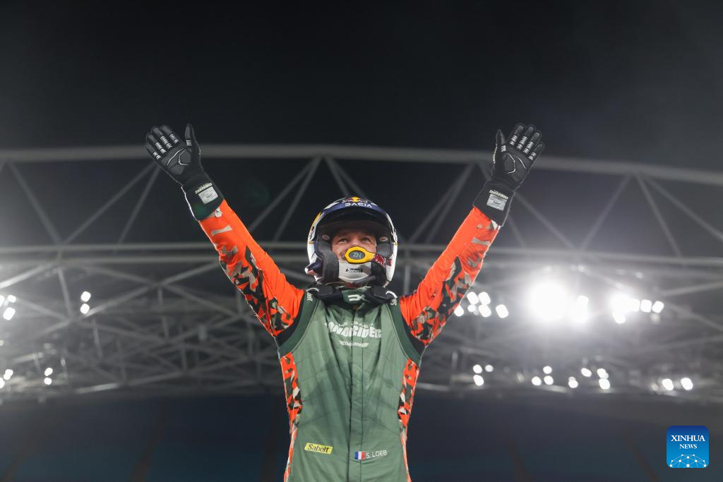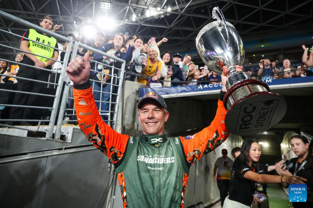 Sebastien Loeb of France celebrates winning the Race of Champions (ROC) at Accor Stadium in Sydney, Australia, March 8, 2025. (Photo by Qian Jun/Xinhua)