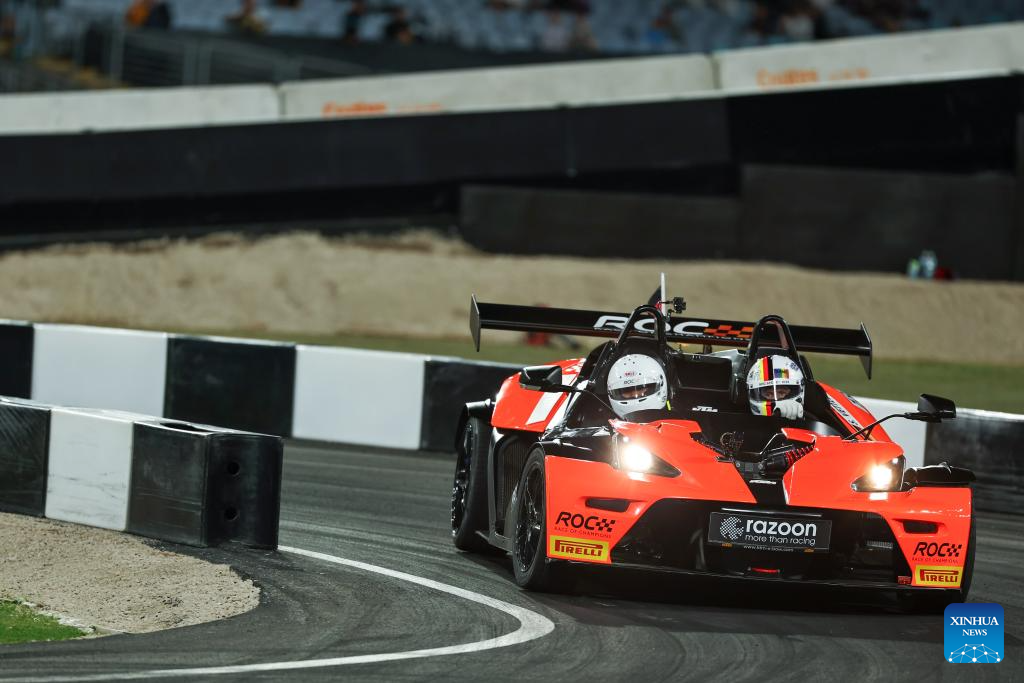 Sebastian Vettel of Germany competes during the final of the Race of Champions (ROC) at Accor Stadium in Sydney, Australia, March 8, 2025. (Photo by Qian Jun/Xinhua)