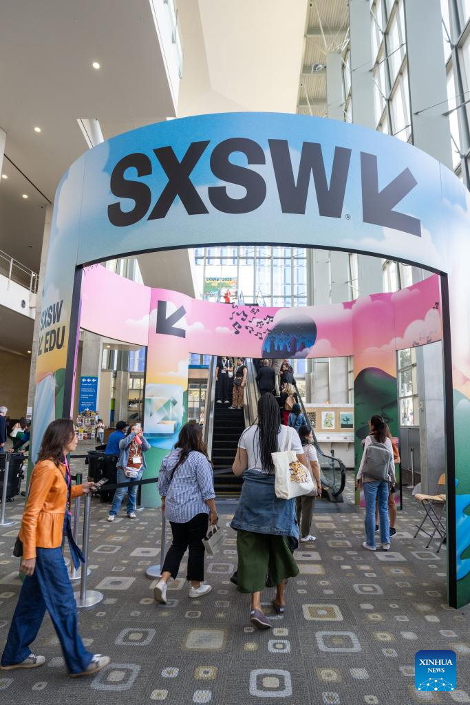 AUSTIN, the United States, March 7 (Xinhua) -- South by Southwest (SXSW) 2025, the annual convergence of technology, film, and music, kicked off in Austin, U.S. state of Texas, on Friday, transforming the state's capital city into a hub of innovation showcases, tech panels and cross-cultural networking alongside a vibrant lineup of live music, comedy, and film screenings.