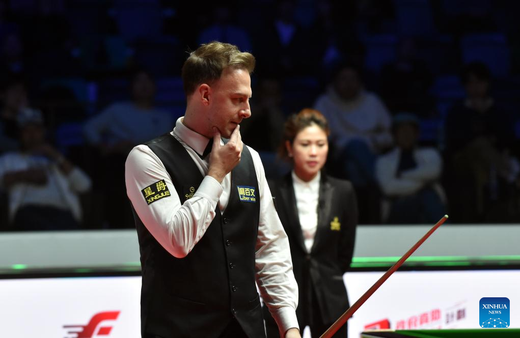 Judd Trump reacts during the semifinal match between England's Stuart Bingham and England's Judd Trump at the Snooker World Grand Prix 2025 in Hong Kong, south China, March 8, 2025. (Xinhua/Lo Ping Fai)